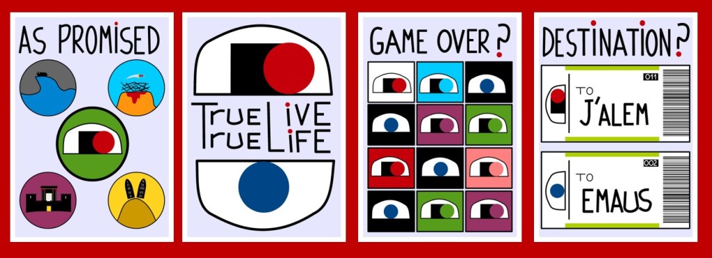 - Game Over, que es un diseño que intercala sepulcros abiertos con sepulcros cerrados aprovechando de nuevo los colores litúrgicos. Este diseño interpela al observador a posicionarse y decidir entre un Jesús que resucita o un Jesús que sólo fue buena persona.