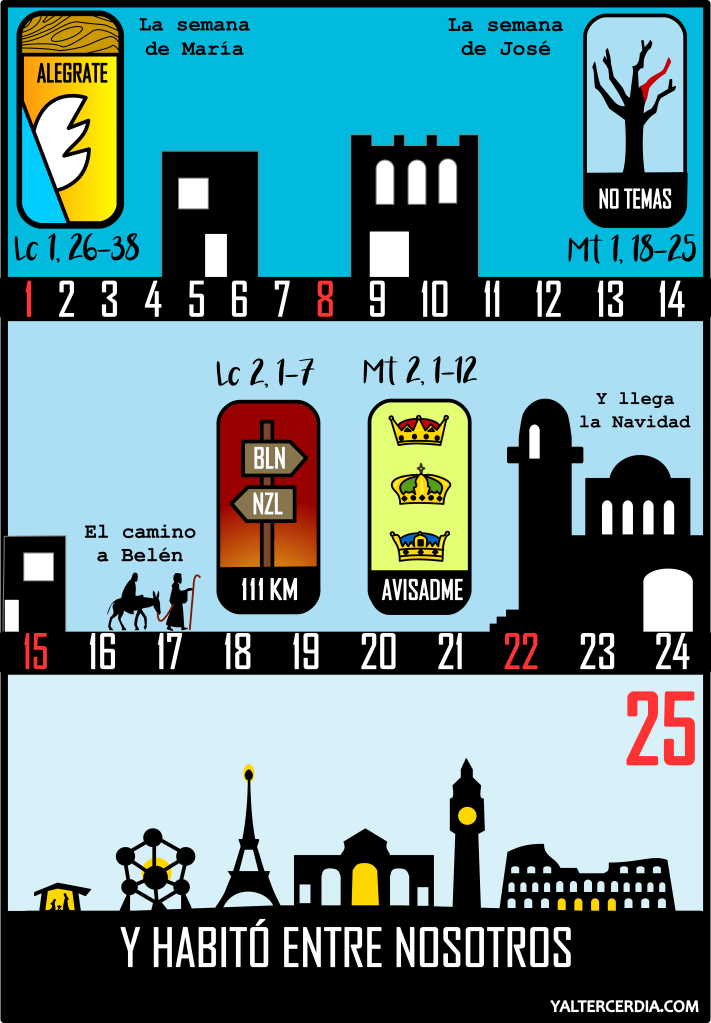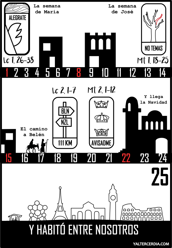 Dado que este año es un Adviento muy especial porque en 2025 celebramos el Jubileo que nos recuerda justo esta encarnación, desde Yaltercerdia.com te queremos regalar GRATIS un calendario de Adviento para que este año, si, puedas preparar bien tu corazón para acoger al Señor. La versión para colorear la puedes descargar más abajo. La versión en color la puedes encontrar en nuestra tienda online aquí