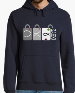 This three padlock desing is based on the hypothesis that the fist was the symbol first catholic used to meet securely between christians. One drawed a half-moon shape in the sand and if the other one completed it forming the fish, it meant that he was also catholic. It was a kind of password, with a deep meaning as fish in ancient greek was written as Icthhus, that stands for I = Iesous (Jesus); Ch = Christos (Christ); Th = Theou (God); U=Uios (Son); S=Soter (Saviour). This is the logic of this design where the padlock open when the password is correct.